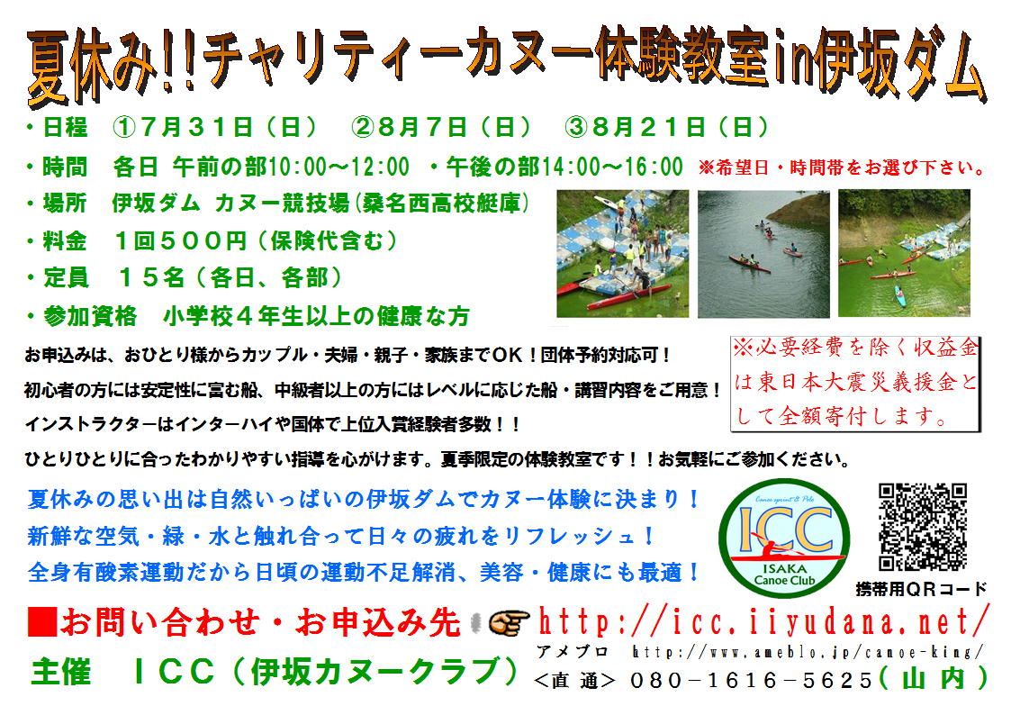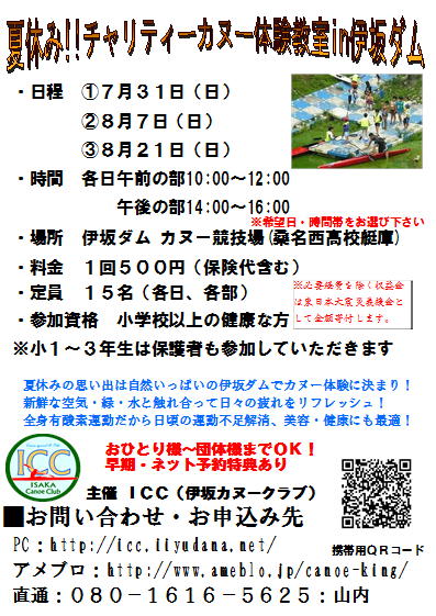 夏休み!!チャリティーカヌー体験教室宣伝用POP(A4)フライヤー出来ました!!
